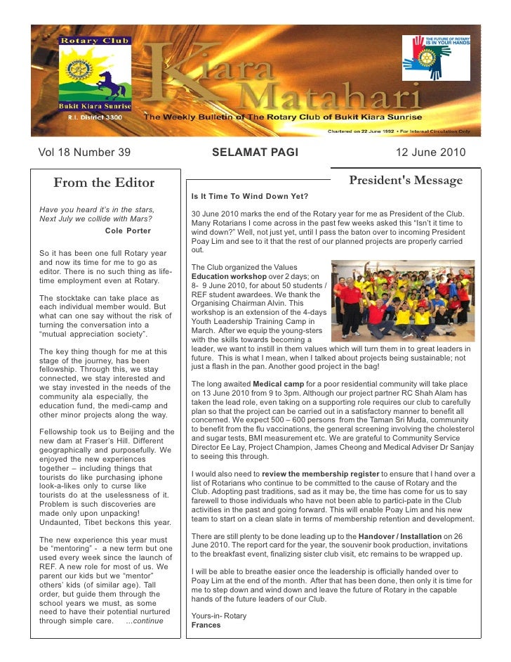 Club bulletin editor officer guide the club editor is responsible for keeping the membership informed about important activities, opportunities and deadlines at the club, district and international level. He directs the editorial aspects of the magazine, including material selection, editorial themes, and risk management issues. Bulletin pages—all bulletin pages not yet been submitted into the workflow must be submitted. Know what is happening in the parish so that articles are relevant exercise sound judgement as to what should be included in the bulletin Here's a q&a about marty, his love of music and his new show, which started sept.